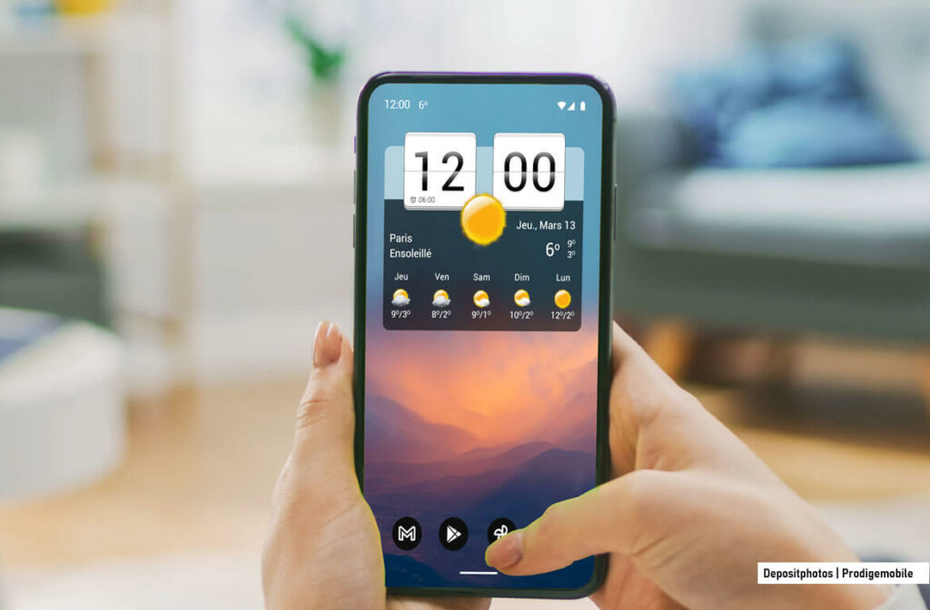 Contrairement à une application classique, un widget ne s’utilise pas en plein écran. Il reste visible en permanence sur votre écran d’accueil. Certains widgets offrent également des fonctionnalités supplémentaires comme l’affichage de la météo, de la date ou encore de plusieurs fuseaux horaires.