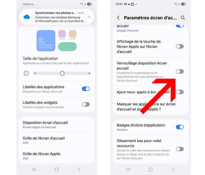 - Étape 4: Désactivez le bouton associé pour retrouver la liberté de réorganiser vos icônes et widgets.