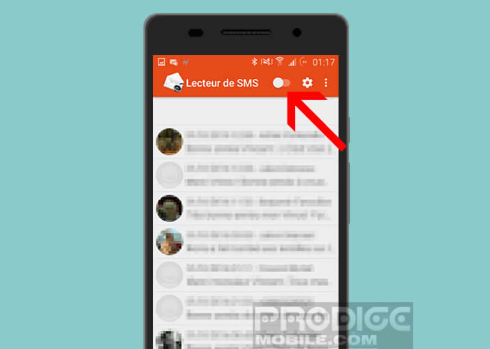 - Appuyez ensuite sur le bouton placé en haut de la fenêtre pour activer la lecture à haute voix des textos entrants