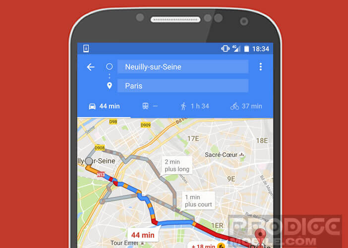 - Votre itinéraire va apparaître sur l’écran de votre mobile Android